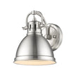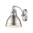 The Yep by Golden Lighting Duncan 1-light Vanity features traditional elegance with a pewter finish and a metal shade, providing soft lighting ideal for bathrooms.