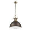 The Yep by Golden Lighting Duncan 1-light 14in Chain Hung Pendant combines traditional and farmhouse design with aged brass and a metal shade, creating a warm ambiance that enhances living spaces.