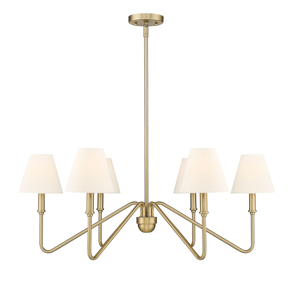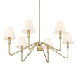 The Yep by Golden Lighting Kennedy 6-light Chandelier combines modern sophistication with Brushed Champagne Brass finish and a fabric shade, creating an ambient glow that elevates dining rooms and foyers.