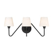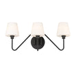 The Yep by Golden Lighting Kennedy 3-light Vanity in Natural Black combines a sleek design with a Natural Black finish and glass shades, providing stylish illumination for bathrooms.