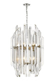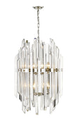 Add some sparkle to a dining room or foyer with this exquisite, clear crystal pendant. This stunning fixture flaunts twelve glowing lights that glisten and gleam against the dazzling crystal shade and shining polished nickel frame.