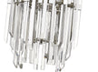 Chunky, rectangular slabs of crystal towers, suspended between highly polished stainless-steel towers, formed together in contemporary sleek shapes, create a stunning collecti on of crystal chandeliers and pendants.