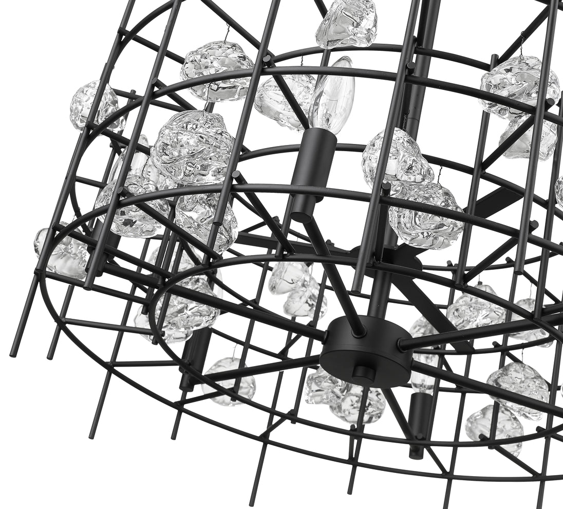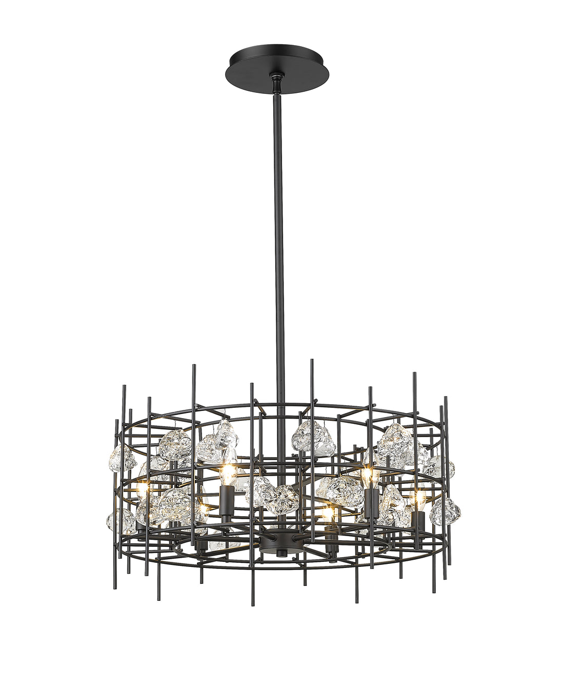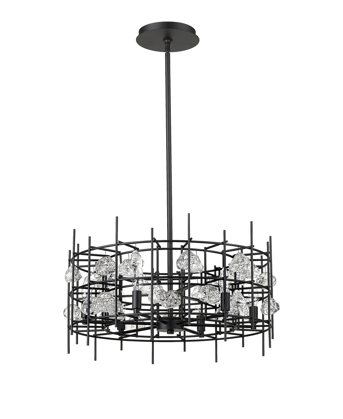 Light up a dining room, living room, or foyer with the cool, contemporary allure of this matte black chandelier. An eye-catching array of linear metal accents surround six shining bulbs for a sophisticated design that radiates modern elegance.