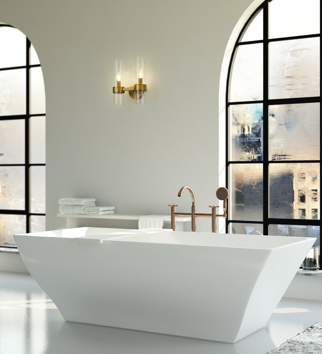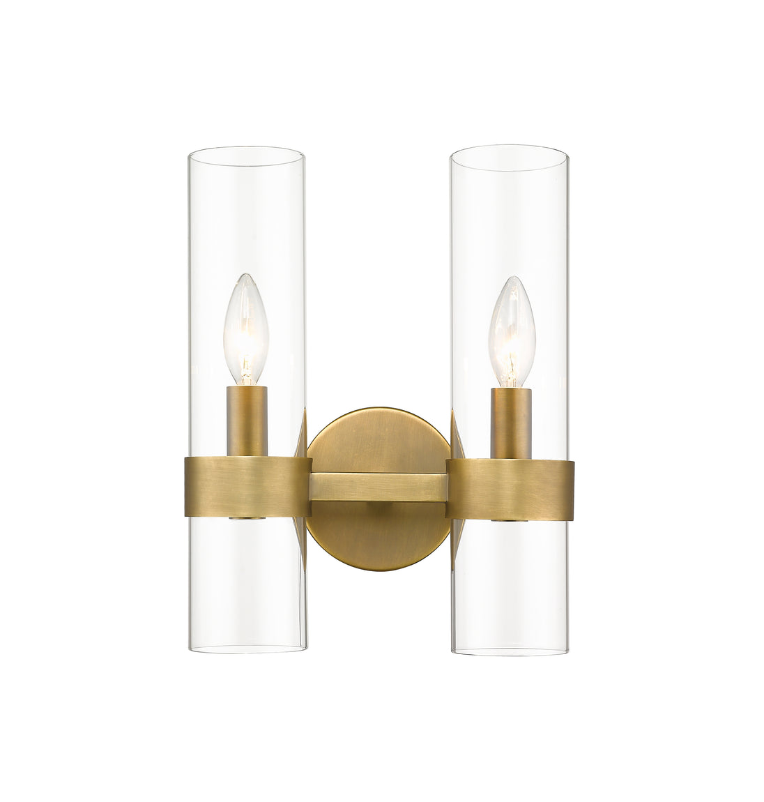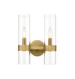 This two-light wall sconce creates a simple yet stylish look in any modern space. Contemporary vibes infuse an easy-living attitude in the Datus rubbed brass two-light sconce, yielding a sleek design featuring slender clear glass cylinder shades mounted to a warm rubbed brass finish solid steel frame. Dress up and illuminate a hallway, bath space, or main living area with this sconce with a minimalist yet impressionable flavor.