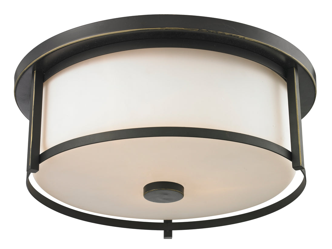 The contemporary Savannah family adds sophistication to home décor. The beautifully appointed olde bronze fixture is perfectly paired with matte opal glass shades in this 3 light flush mount.