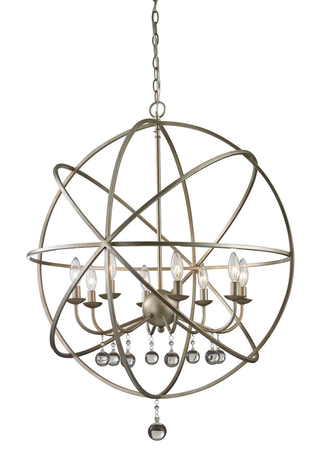 Spherical art at its best! On this 8 light pendant, the rich hues of the antique silver finish mingle playfully with the crystal spheres sparkling from within.