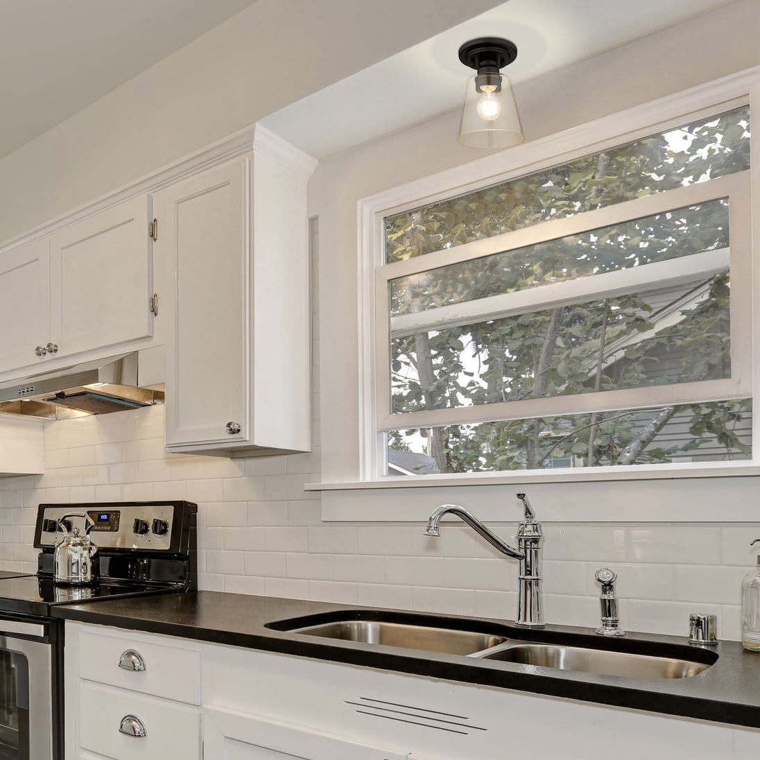 Harmony of vintage style fixture, clear glass, and vintage bulb (not included) shapes define the Annora family. Clear glass paired with matte black fittings complete the look.