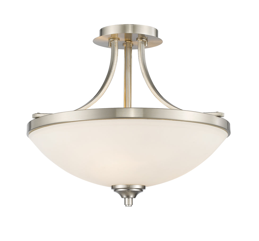The circular base and the waterfall arms of the Bordeaux family is modernized by the soft matte opal shades which is paired with bronze fittings.