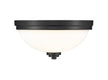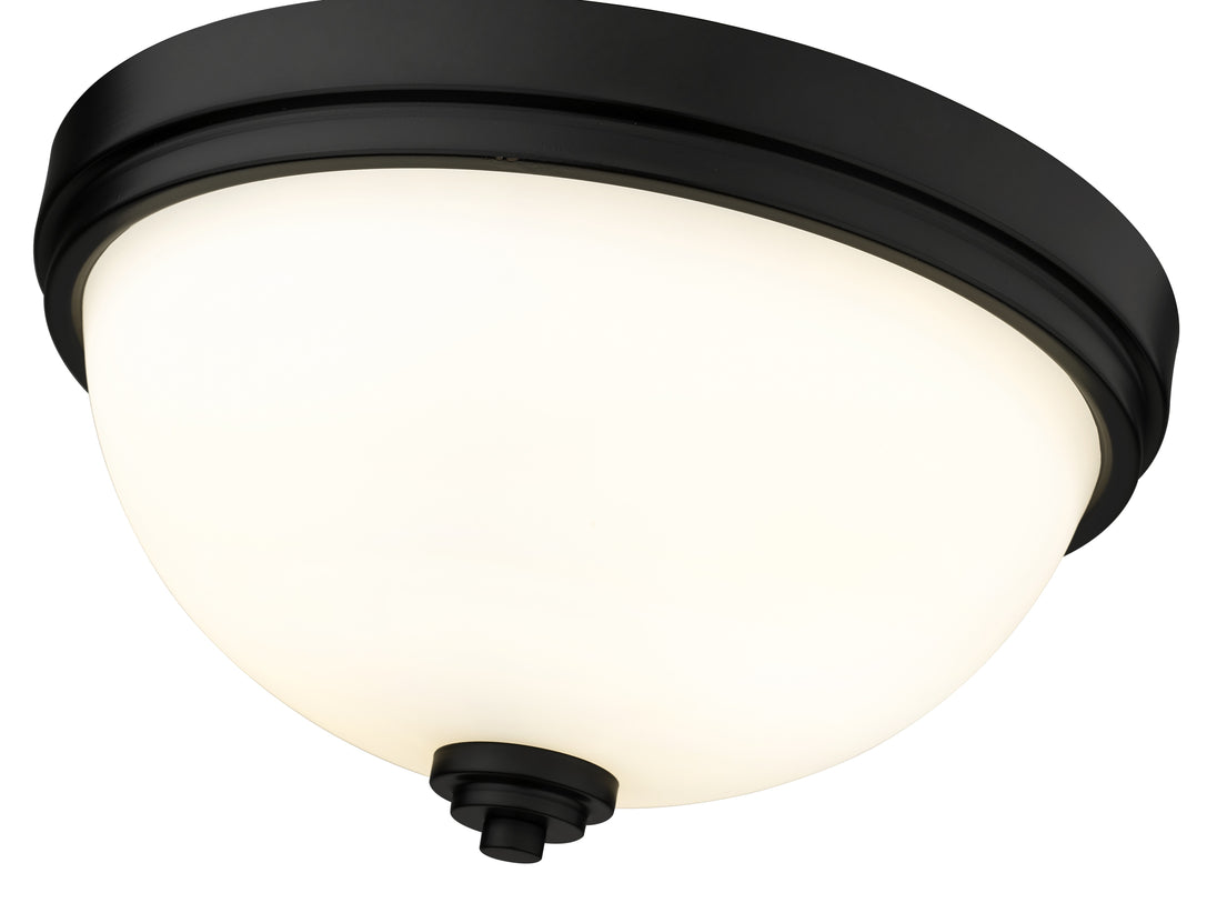 Make lighting work as a décor staple in a room devoted to easy living and solid taste from floor to ceiling. With a Matte Black finish metal mount and domed Matte Opal glass shade, this three-light flush mount ceiling light illuminates a larger living space as it completes a custom design scheme that works in modern or transitional settings.