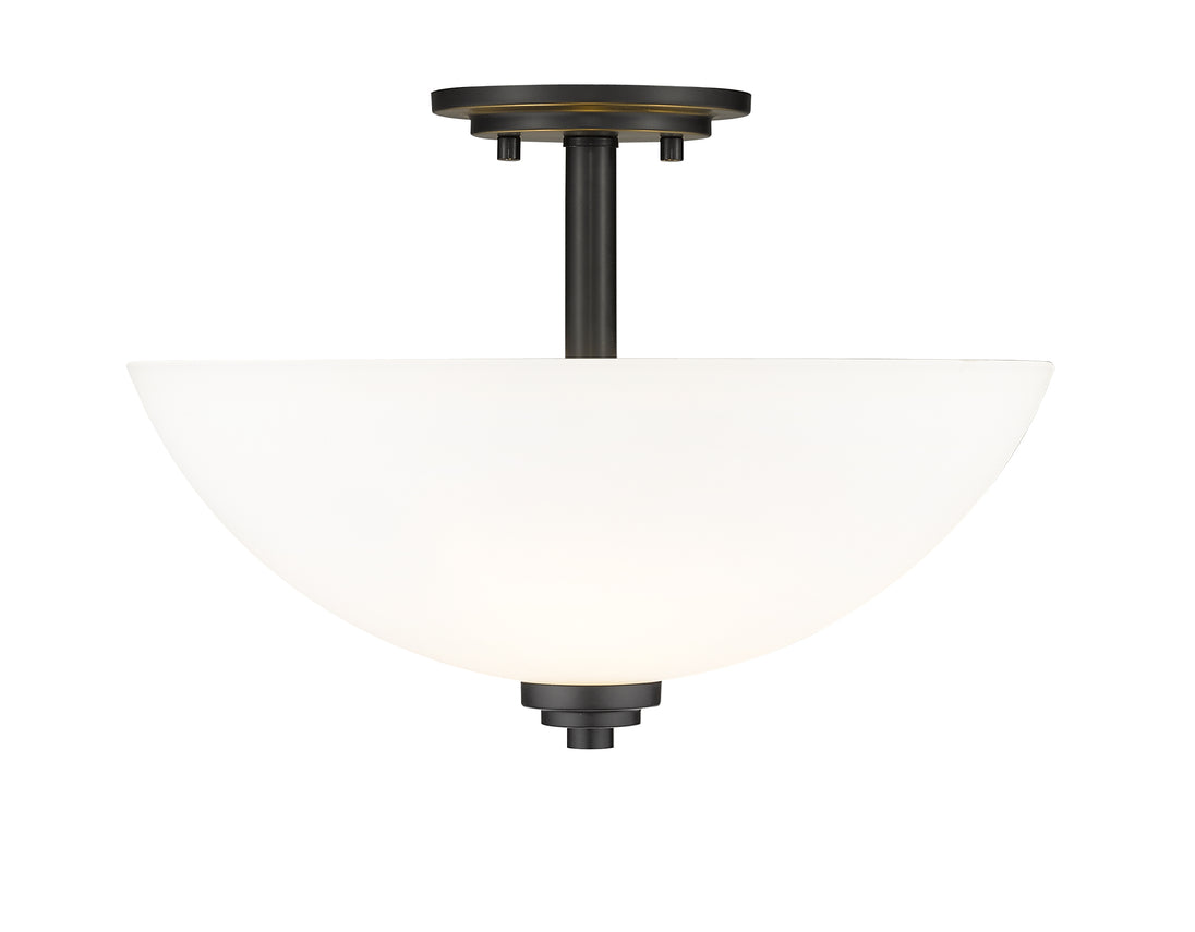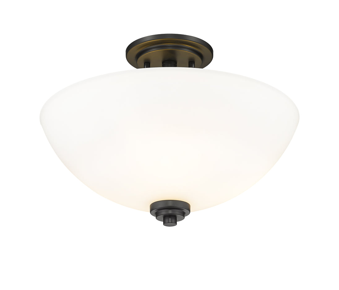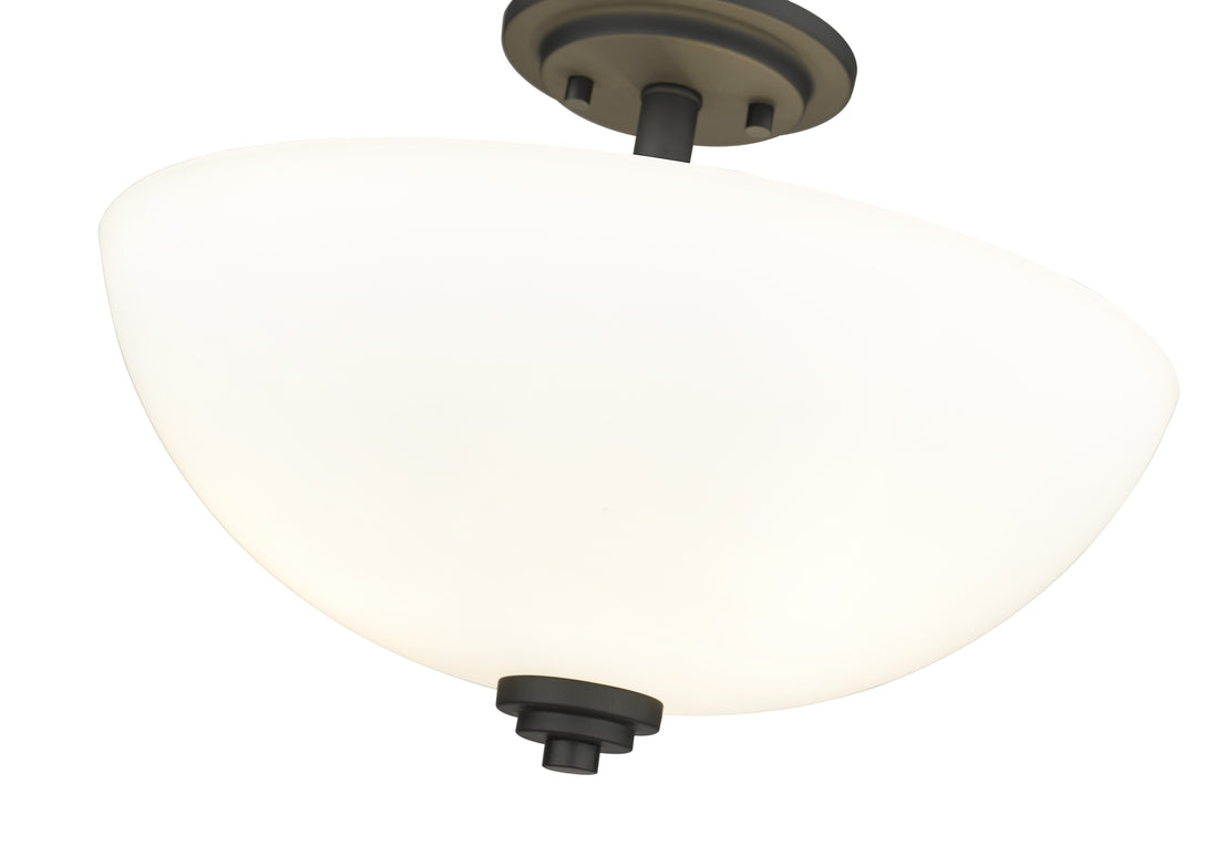 Make lighting work as a décor staple in a room devoted to easy living and solid taste from floor to ceiling. With a Matte Black finish metal mount and domed Matte Opal glass shade, this three-light semi-flush mount ceiling light presents a classic modern or transitional aesthetic while drawing deserved attention.