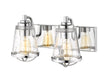 Enjoy a charming nautical look and a bright, shiny ambiance in any bath space. This two-light vanity fixture features lovely seedy glass shades and sleek chrome steel as a mount and design trim.