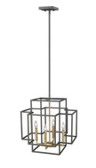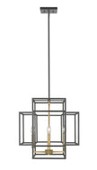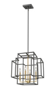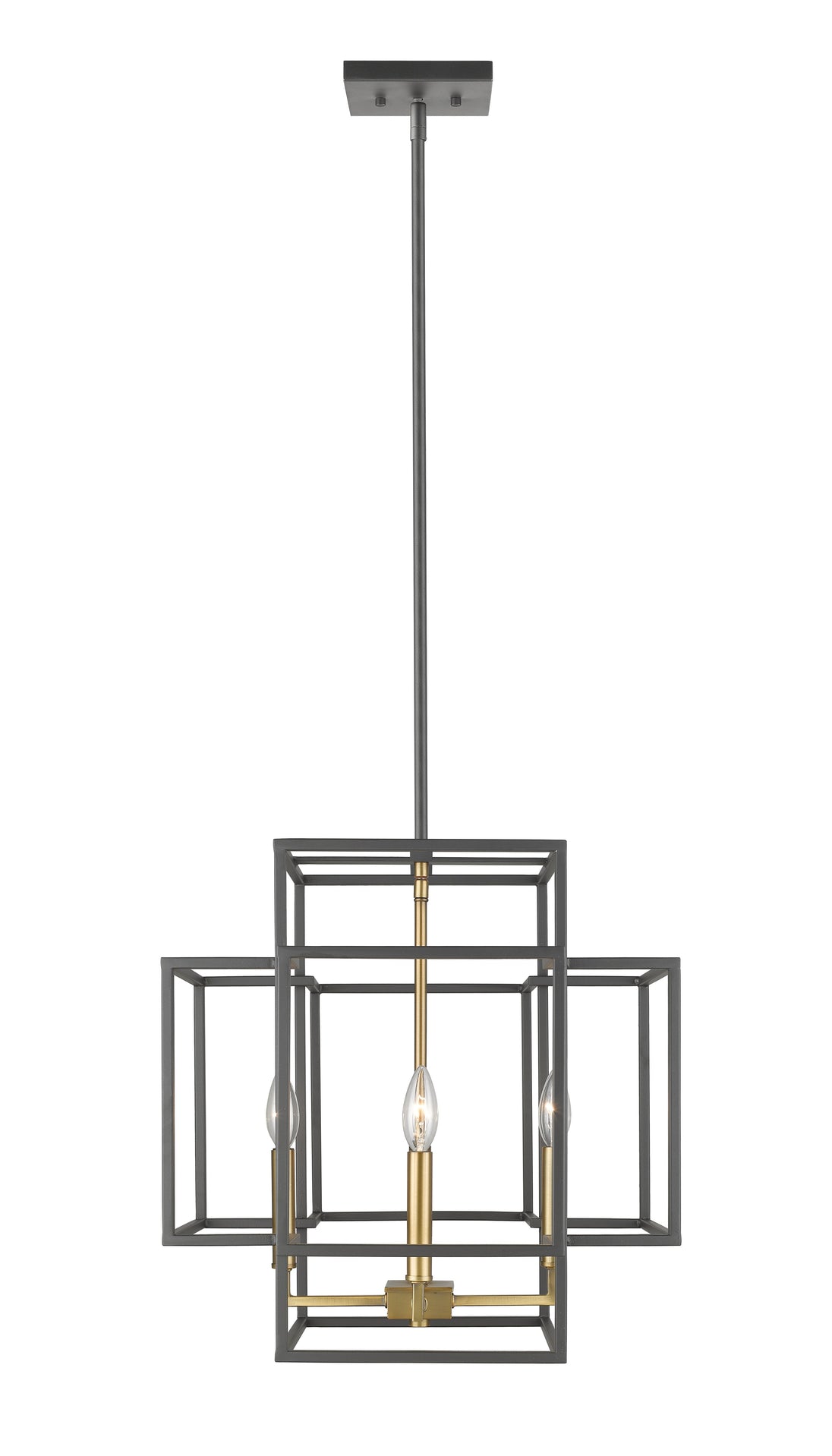 Indulge in a love of fresh modern style with softening touches, and add this bronze and olde brass steel four-light pendant to a custom room design. Candelabra-style bulb bases change up the crisp contemporary feel of an open geometric steel frame, yielding an expressive fixture that calls attention to a dining ensemble or living space.