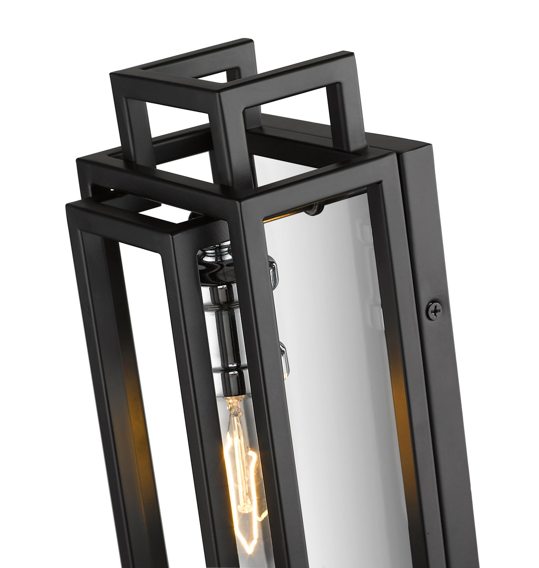 Exquisitely crafted with bold, black lines surrounding a gleaming, chrome frame, this single-light wall sconce will illuminate your home in style. This handsome fixture looks especially elegant in a bedroom, or with one placed on each side of a bathroom mirror.