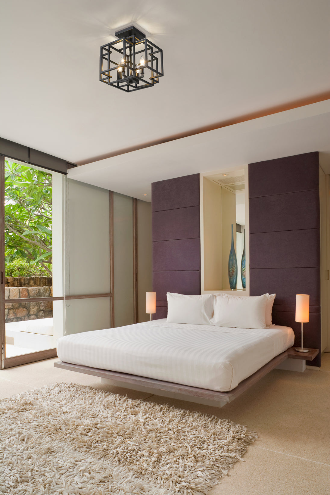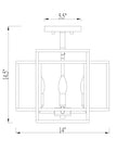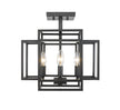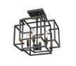 Add a warm glow to a contemporary interior with this Arts and Crafts era-inspired modern semi-flush mount, featuring a multi-dimensional open frame steel cage that surrounds an exposed candelabra style light fixture. With a dramatic silhouette brought on by the audacious bold matte black finish steel cage, this modern four-light semi-flush mount makes a wonderful minimalist addition to entryway foyers, powder rooms or even small dining nooks, transforming the space with its captivating tesseract-like design. Mount this transitional semi-flush mount with easy on-the-eyes Edison style bulbs for a soothing glow and ambiance.