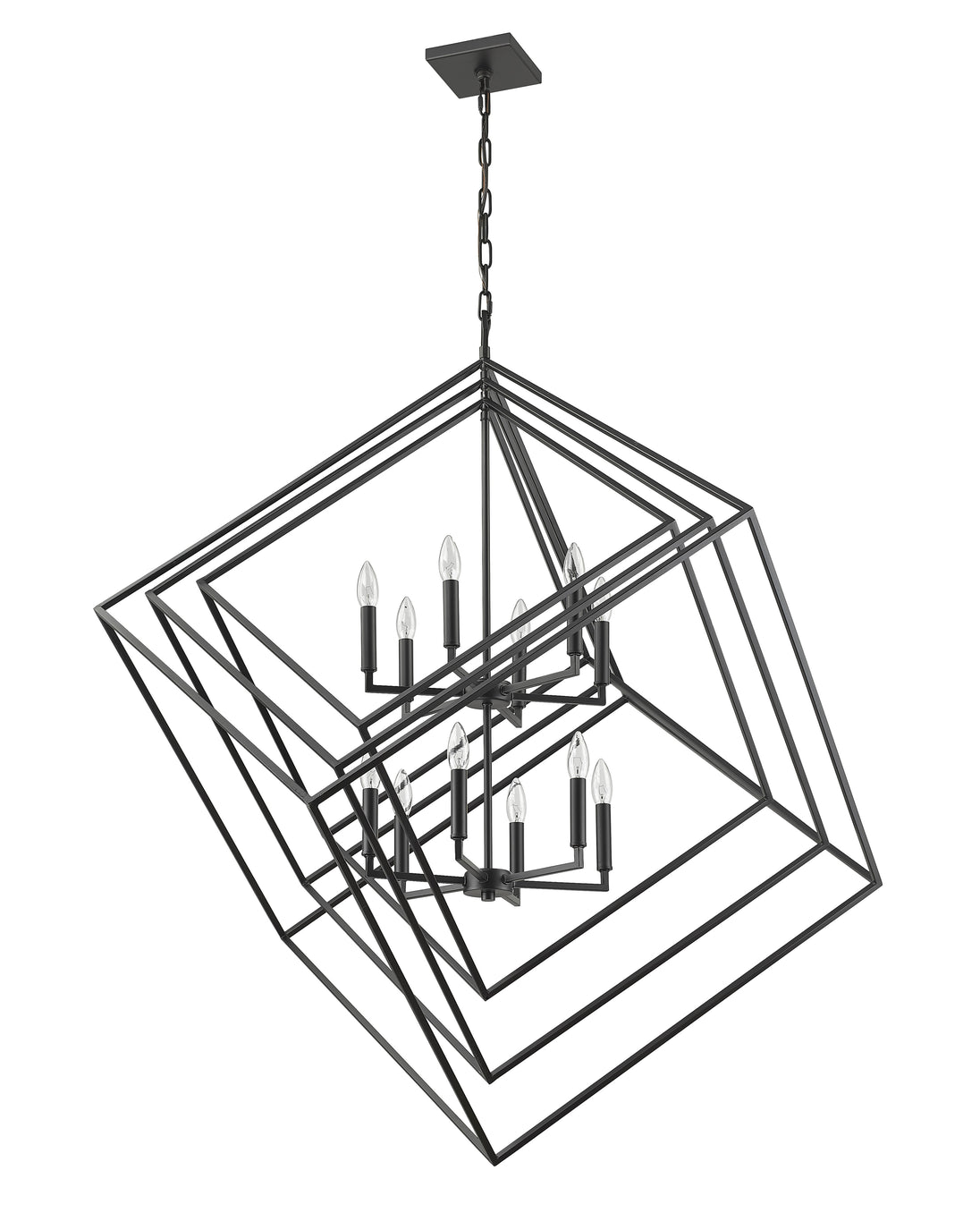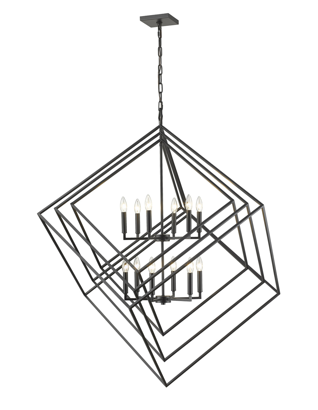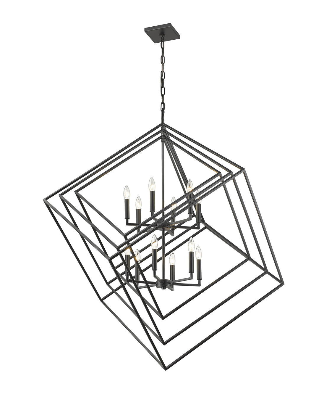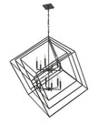 An overlapping geometric frame features 10 candelabra bulbs on this contemporary chandelier. Complete with a sophisticated combination of form and function, this piece delivers appeal with a matte black finish.