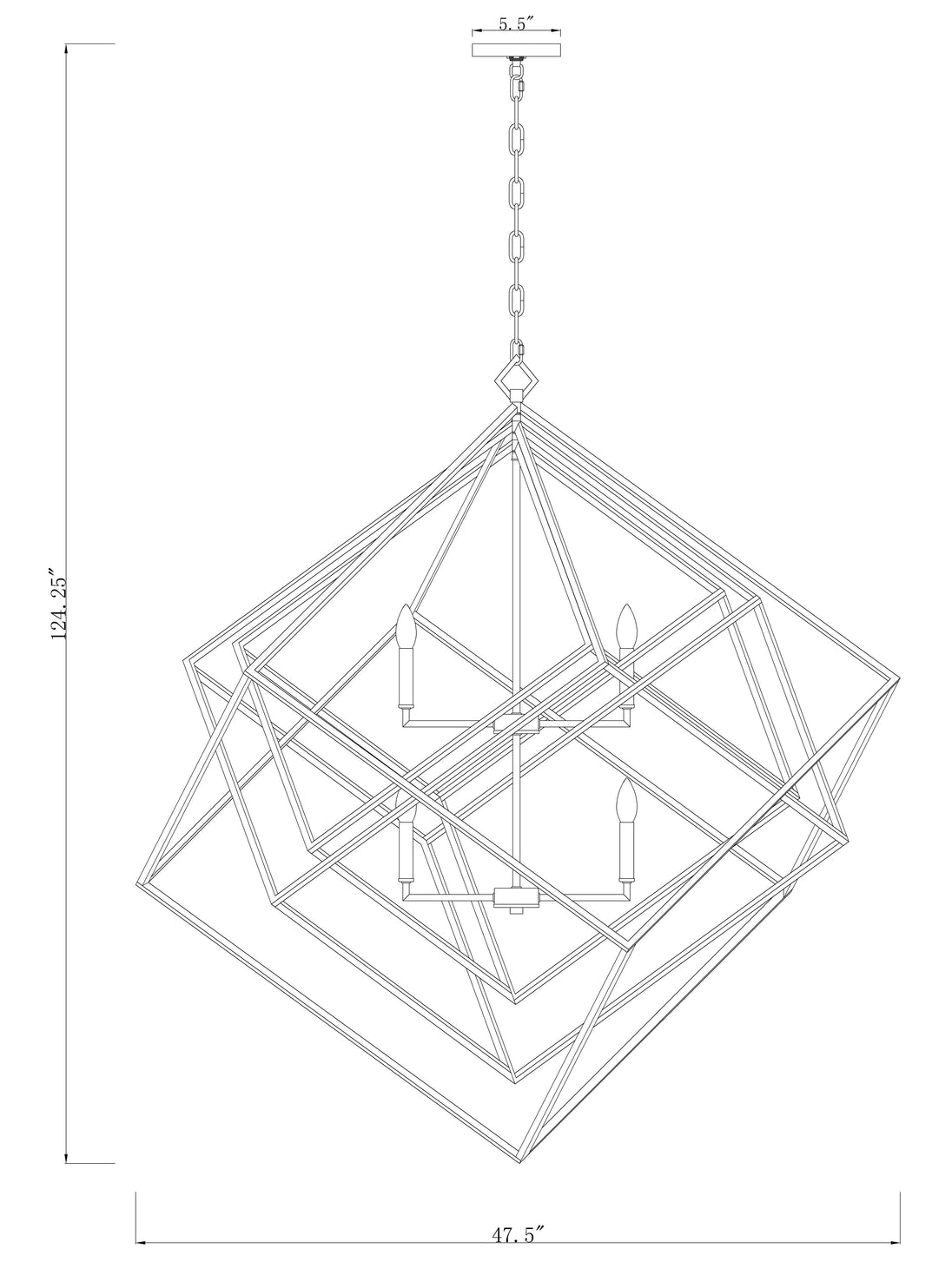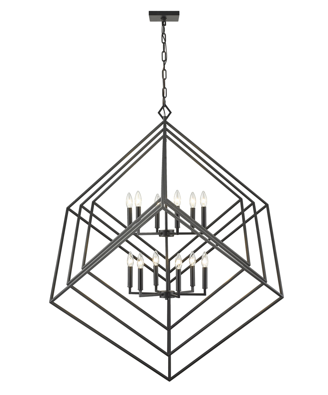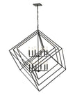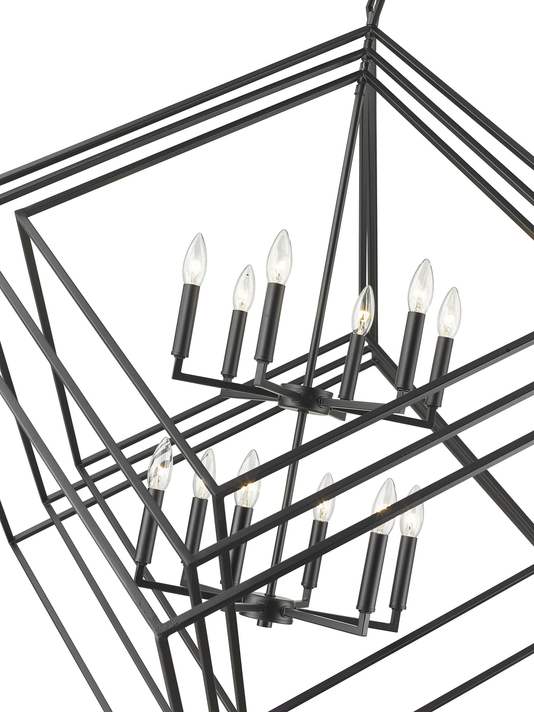 An overlapping geometric frame features 10 candelabra bulbs on this contemporary chandelier. Complete with a sophisticated combination of form and function, this piece delivers appeal with a matte black finish.