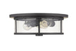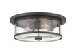 Rustic stylish sophistication is breathtakingly realized in this mid-century modern three-light flush mount. A glowing bronze finish adds an industrial brilliance to the clear glass small cylinder shade.