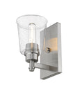 Classic elegance and a beautifully neutral finish create a fixture that expresses design personality in a bath or living space. This brushed nickel steel wall sconce gains soft touches from a romantic clear seedy glass shade and delivers a sophisticated, artistic addition to contemporary or transitional decor.