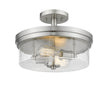 Create an exceptional contemporary or transitional design scheme with the classic styling of this two-light semi-flush mount ceiling light. Enjoy the versatility of elegant brushed nickel in a steel frame, and the romantic clear seedy glass shade that finishes its exquisite composition.