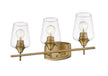 Upscale sophistication with a Mid Century Modern vibe tells the story of this elegant three-light vanity light. A blend of delightful materials offers stunning large glass shades with rich Olde Brass finish metal, delivering a warm palette that embellishes the look of any transitional bath space and frames a vanity with exquisite beauty.