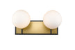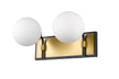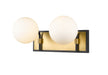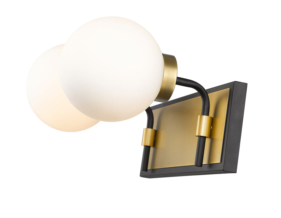 Upgrade the ambiance of your home with this gorgeous two-light vanity. It's crafted with a matte black and olde brass finish and opal shades that deliver a warm radiance. It's ideal for a bathroom, powder room or bedroom with its mix of modern panache and old school lines.