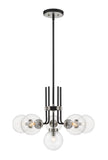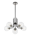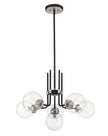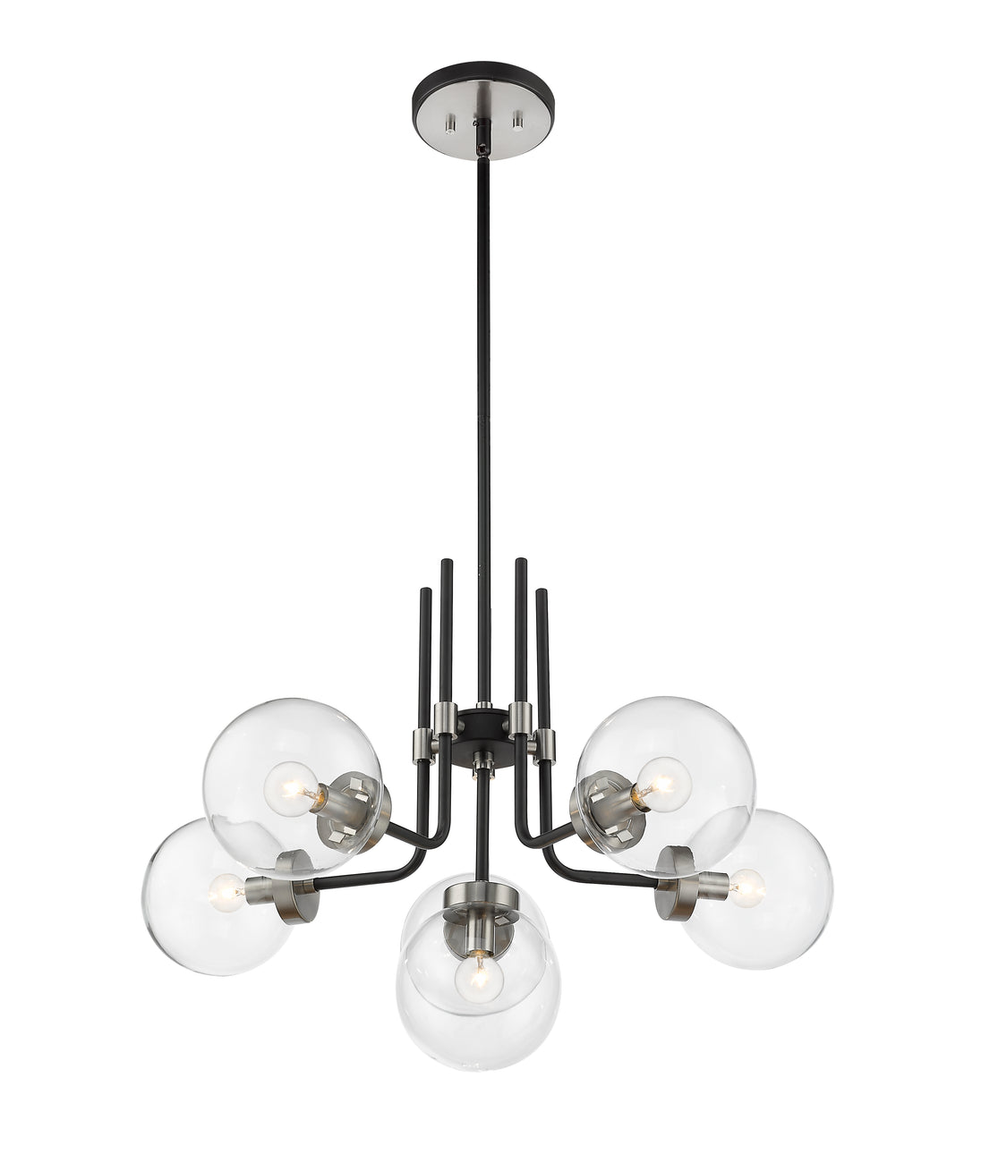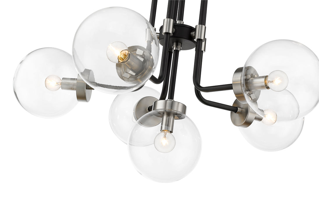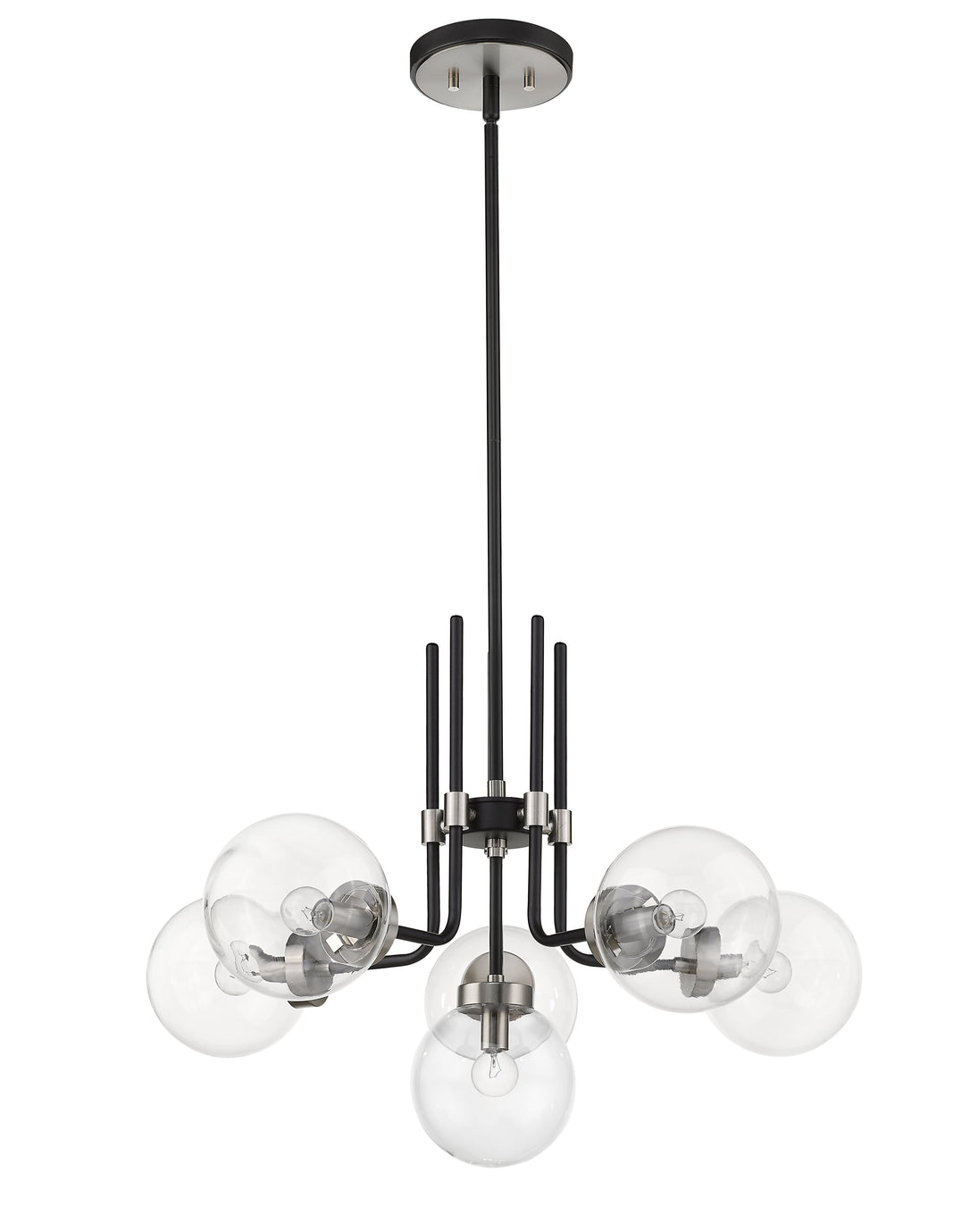 This clean, crisp six-light chandelier adds a magnificent aura to your home. It's fashioned with a matte black and brushed nickel finish and clear glass shades for the brilliant radiance you're looking for. This beauty will uplift any space in the home, whether it's the dining room, foyer, hallway, or kitchen.