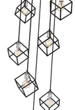 Bold and artistic, the Vertical Pendant makes a striking focal point in any modern or eclectic space. A series of steel, open-framed cubes are suspended at various lengths from braded black cords. Available in several eye-catching options. Finishes include black frame with brass accent, or black frame with brushed nickel accent.