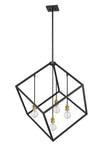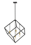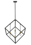 Bold and artistic, the Vertical Pendant makes a striking focal point in any modern or eclectic space. A series of steel, open-framed cubes are suspended at various lengths from braded black cords. Available in several eye-catching options. Finishes include black frame with brass accent, or black frame with brushed nickel accent.