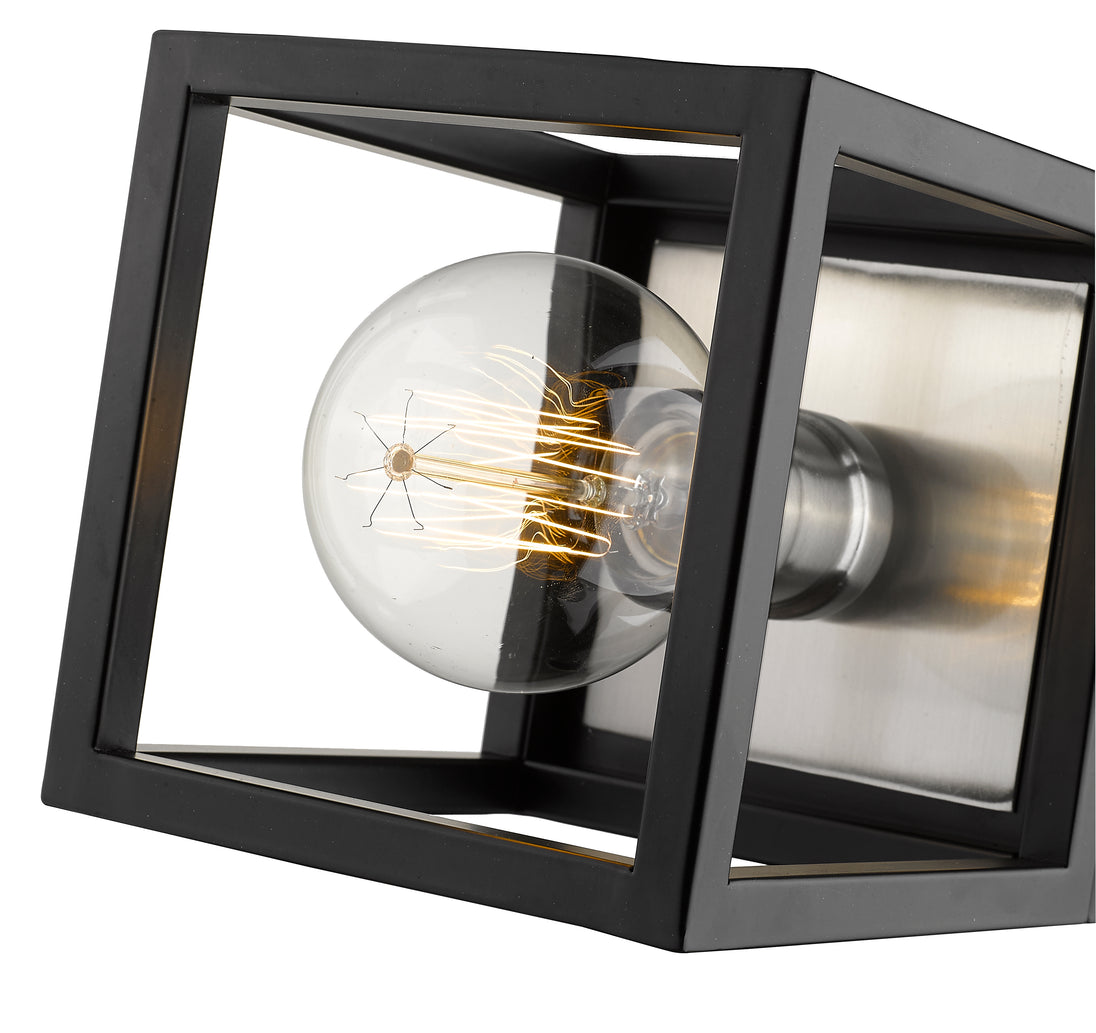 An edgy design highlighted by simple lines makes this two-tone one-light wall sconce an ideal addition to your home lighting collection. It features a classic matte black and brushed nickel finish with a bold square design. You'll love how it enhances the look and feel of any bathroom, powder room, hallway, or bedroom.
