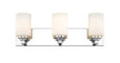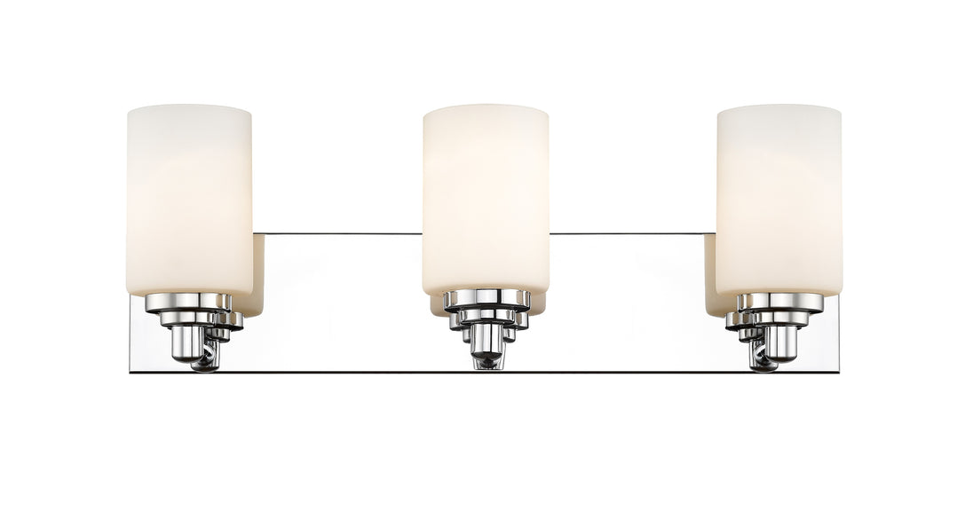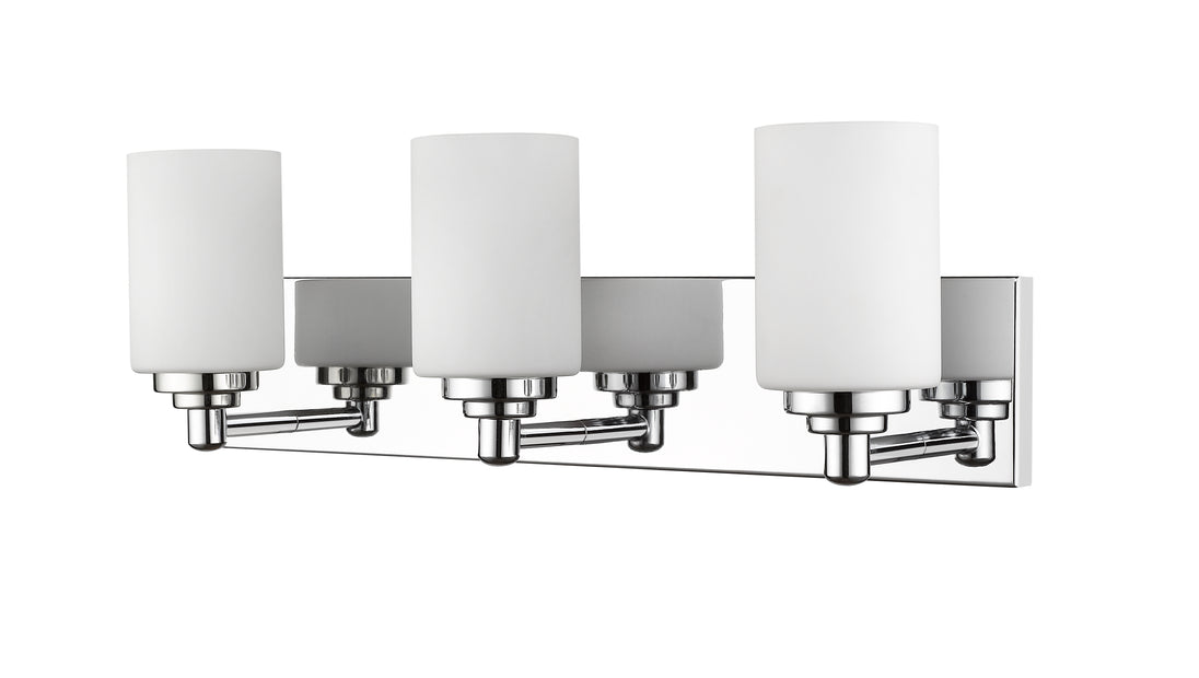 Let your bathroom or hallway bask in soft, warm light. This contemporary three-light wall sconce has a sophisticated, streamlined look, and extends from a long mirrored plate for extra gleam. From the sconce's cylindrical white etched glass shades to its chrome finish, this fixture stylishly upgrades your space.