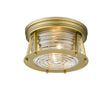 Indulge in a storied historical theme as you outfit a modern space with ambient light fixtures. Aptly named from the Cape Harbor collection, this delightful two-light flushmount ceiling light offers a tribute to authentic nautical fare from coastal Cape Harbor in North America, combining Art Deco flavor with a linear concept. This light offers an angled rubbed brass finish frame and canopy that nestles ribbed clear glass, delivering an aesthetic that moves from industrial to modern to coastal.