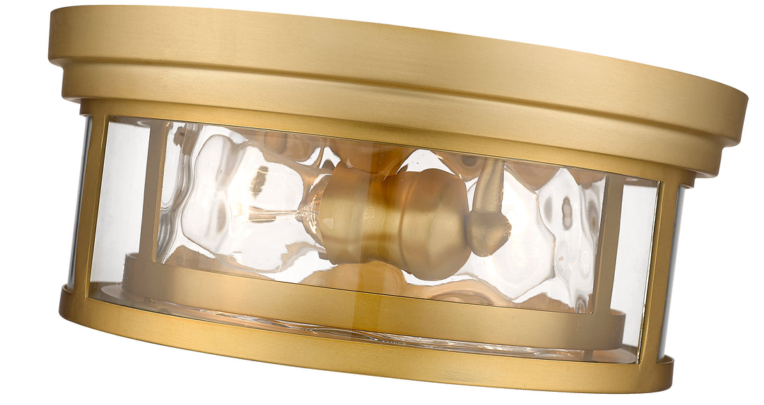 Both contemporary and classic in design, this two-light flush mount light with a clear water glass shade is a lovely lighting solution for your entryway or bedroom. A round silhouette in a matte black steel frame provides a clean design that blends with your existing decor.