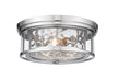 Light up your space with a three-light flush mount light. The clear glass shade and metal frame offer a versatile appearance with an olde brass finish and round silhouette.