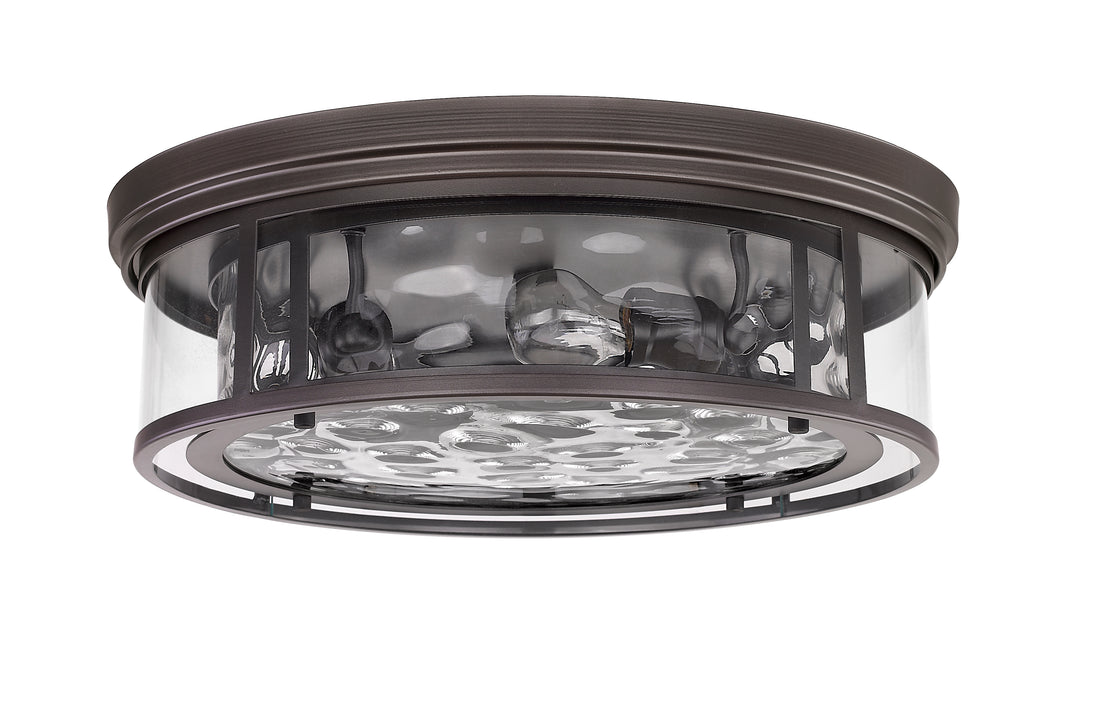 This four-light flush mount light brings a modern feel to any room in your home with its sleek, steel construction and clear water glass shade. Ideal for hallways, entryways, and bedrooms, this fixture comes in a brushed nickel finish for a versatile style.