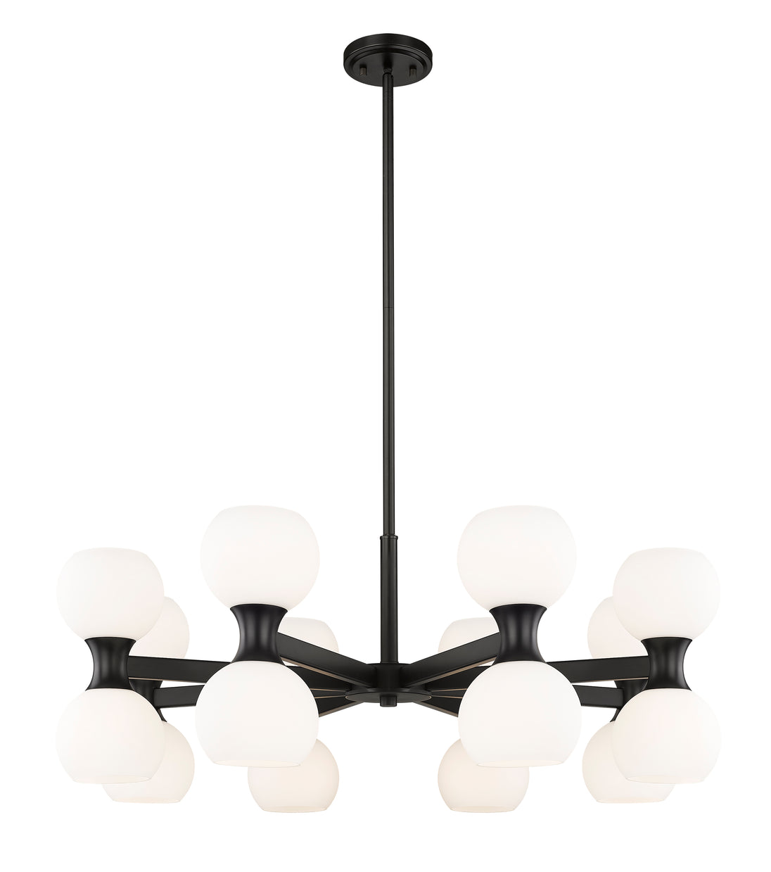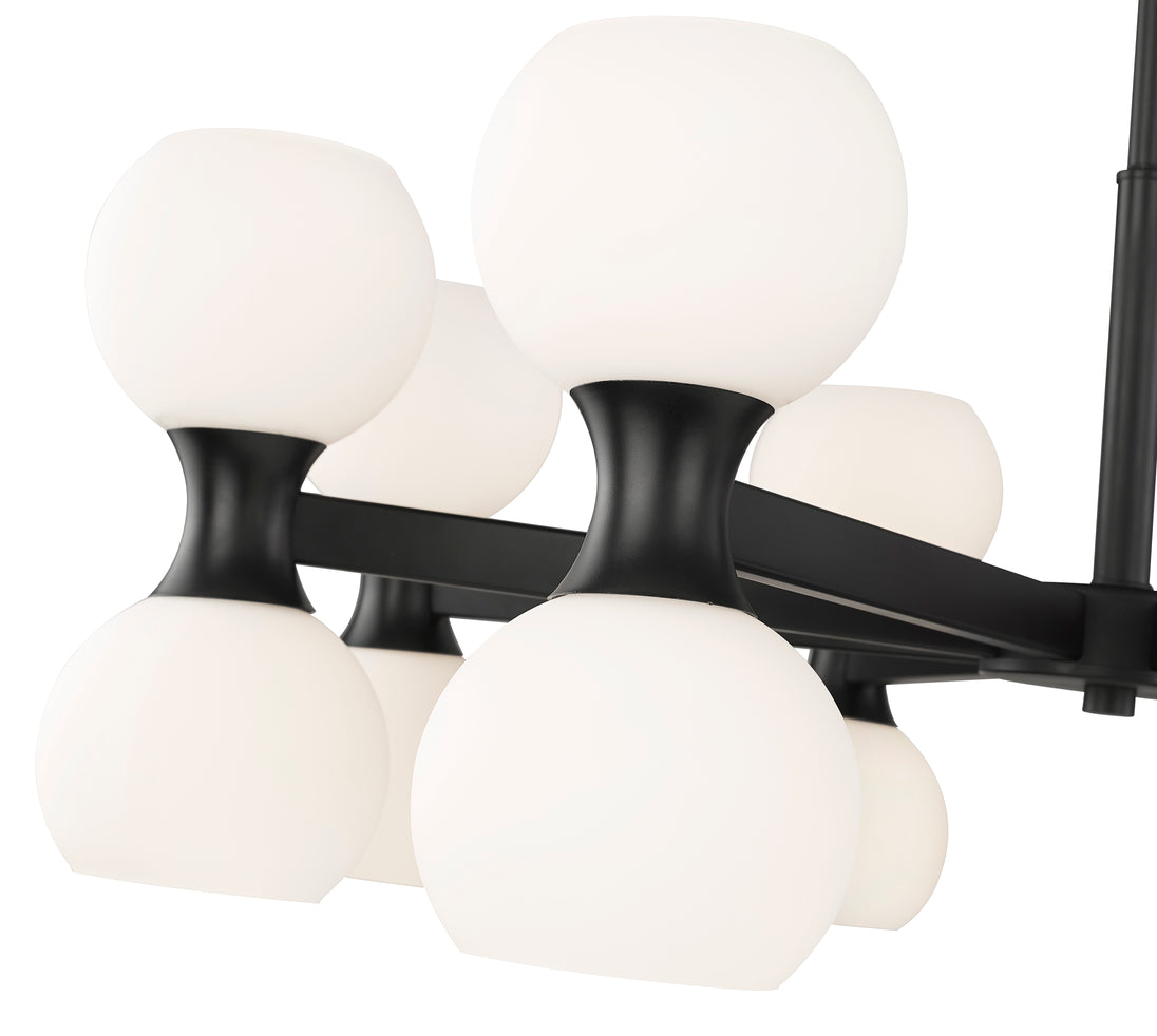 Give a nod to the charming Mid-Century Modern aesthetic with a hint of Art Deco thrown in. This 16-light chandelier from the Artemis collection delivers both uplighting and downlighting through matte opal glass open globes nestling in a frame made of matte black finish steel. A round silhouette ratchets up the festive look of a fixture with personality and plenty of ambient lighting.