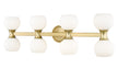 Add a mix of Mid-Century Modern style and Art Deco attitude to an ensuite or guest bath with a vanity light offering a sense of sophistication and strong ambient lighting. This eight-light vanity light from the Artemis collection checks all the boxes for a compelling design and convenient uplighting and downlighting infused by matte opal glass open globes. Linear sensibility joins alluring curves in a soft modern gold finish steel frame, wrapping up a host of decadent features.