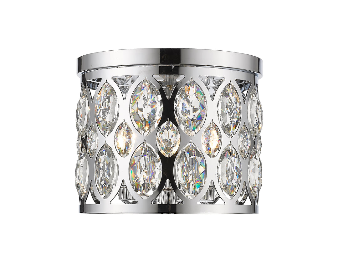 Brightly hued details from this chic wall sconce radiate brilliance. The smoothly curved silhouette features a chrome finish, enhanced by crystal accents.