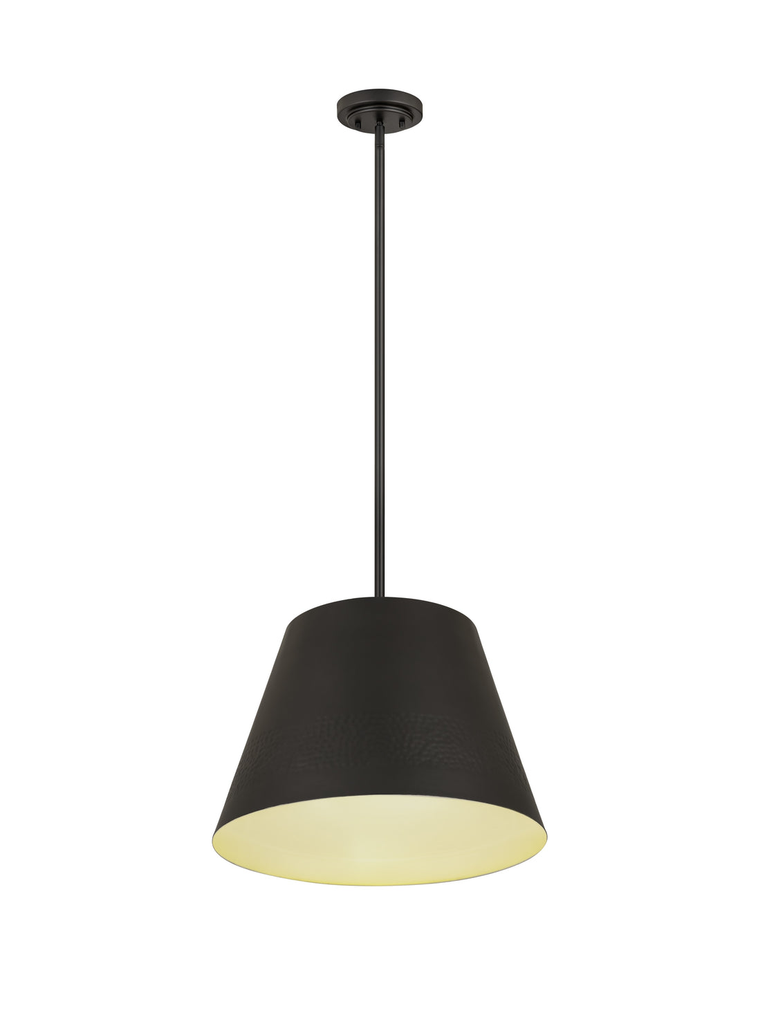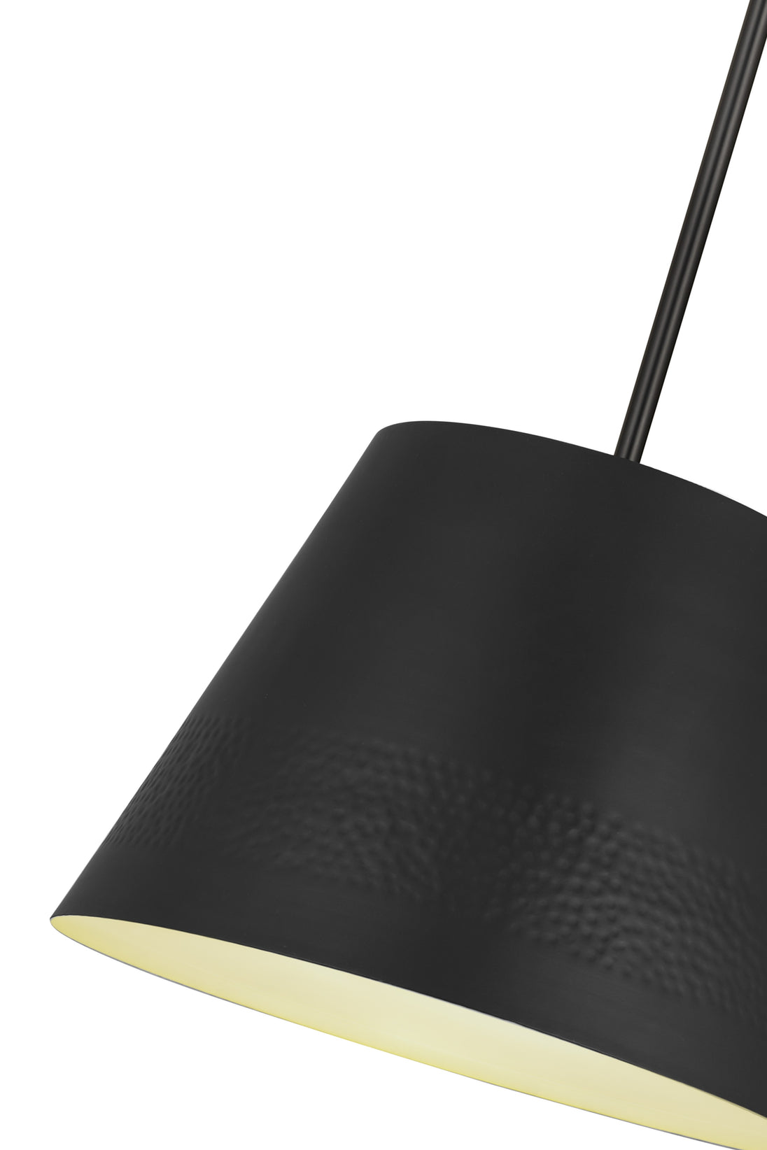 Illuminate your home with the warm glow of the Maddox pendant. Featuring a conical shade with a hammered belt detail, this pendant lends an elegant addition to any decor. Available in Matte Black, Rubbed Brass, and Polished Nickel finishes, the Maddox offers even more flexibility with an adjustable hanging height and the ability to be mounted on a sloped ceiling.