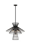 Angular geometric shapes created by the stacked conical steel cages create a visual statement for any room. Available in a choice of finishes such as Matte Black, Polished Nickel, and Rubbed Brass, this collection is both contemporary and warm. Complete this look with vintage-inspired light bulbs to capture the full effect.