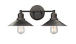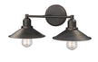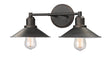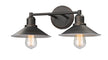Embrace the rich feel of an olde bronze finish as it defines the silhouette of this two-light vanity fixture. Modern in character, its vintage bulbs and hood shades create a softening effect and an easy elegance.