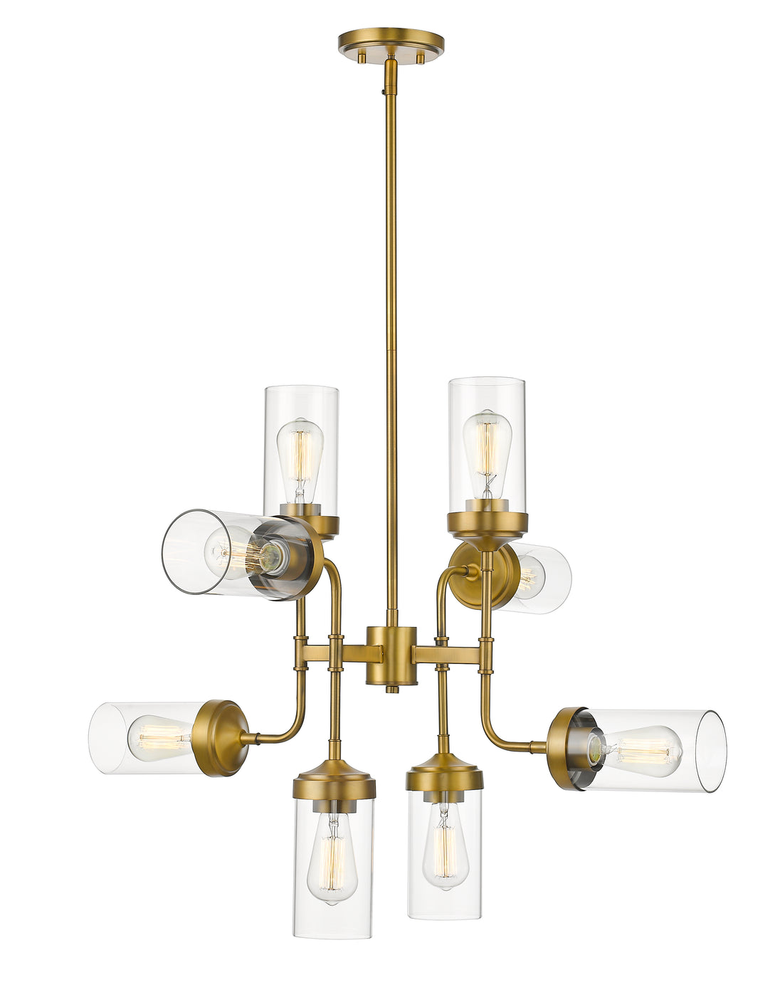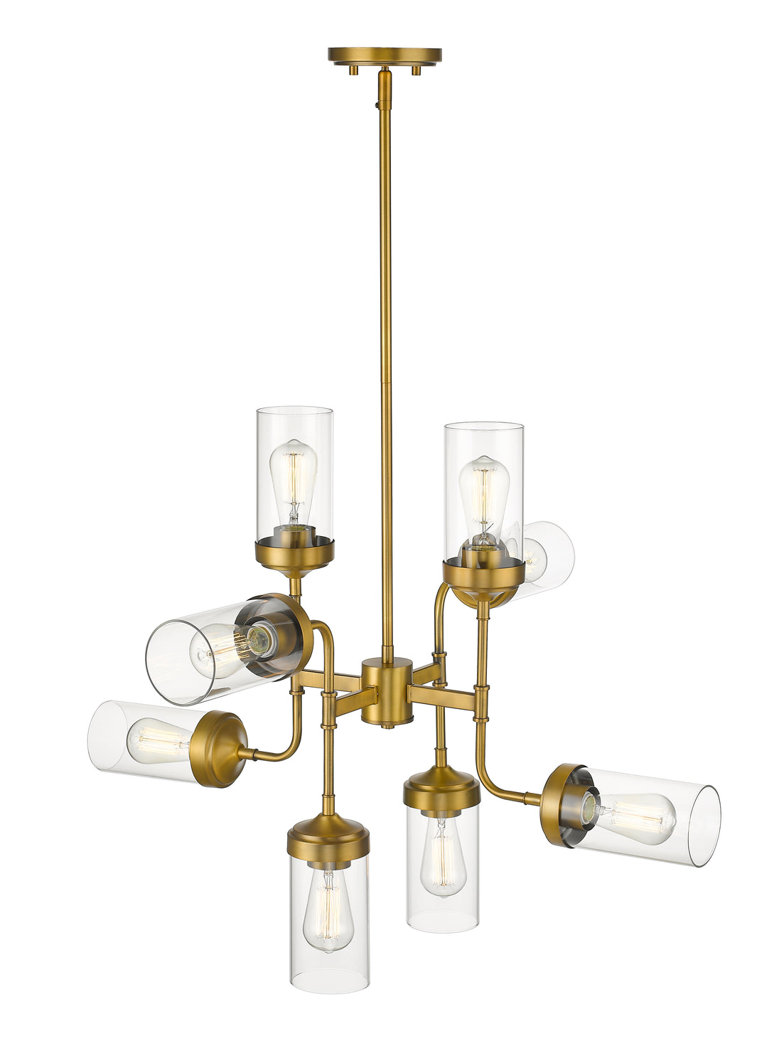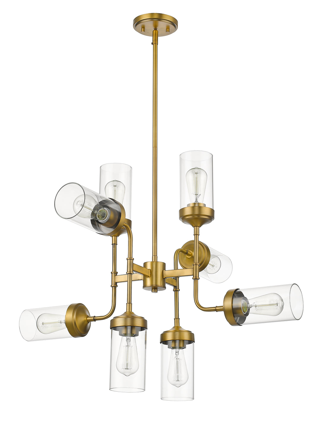 Take a bold step in outfitting a living space with ambient lighting. A cool urban industrial vibe blends contemporary charm with a lighthearted ambiance that makes this eight-light pendant a solid choice.