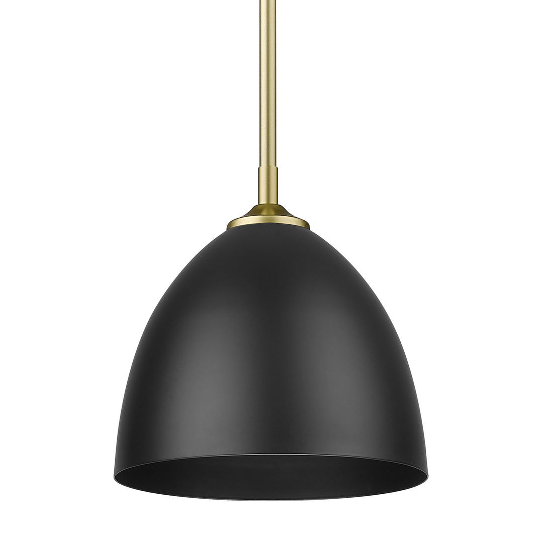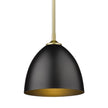 Bring rustic elegance into your home with the Yep by Golden Lighting Zoey 1-light 9in Pendant. Featuring a metal shade and an Olympic Gold finish frame, it creates a welcoming atmosphere. The metal shade beautifully diffuses light, providing focused illumination. Crafted with a matte finish, this Olympic Gold hue features a soft, pale gold that delivers a contemporary touch in its understated sophistication. Its sleek surface enhances any space's decor. Perfect for kitchens, dining rooms, and even covered porches, the pendant is Damp Location Rated, making it suitable for areas with occasional moisture. It's designed for sloped ceilings and has an adjustable height of 13.5" to 55.5". Overall Dimensions: 9"W x 9.38"H x 9"D. Requires 1 E26 Medium base bulb (not included) with a maximum wattage of 100. The Zoey pendant brings warm, elegant style and high quality to any setting, making it a stunning addition to your home decor.