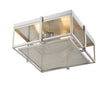 Clean lines and an open geometric silhouette from this three-light ceiling light emit a modern aura. The bright brushed nickel finish highlights the contemporary details.
