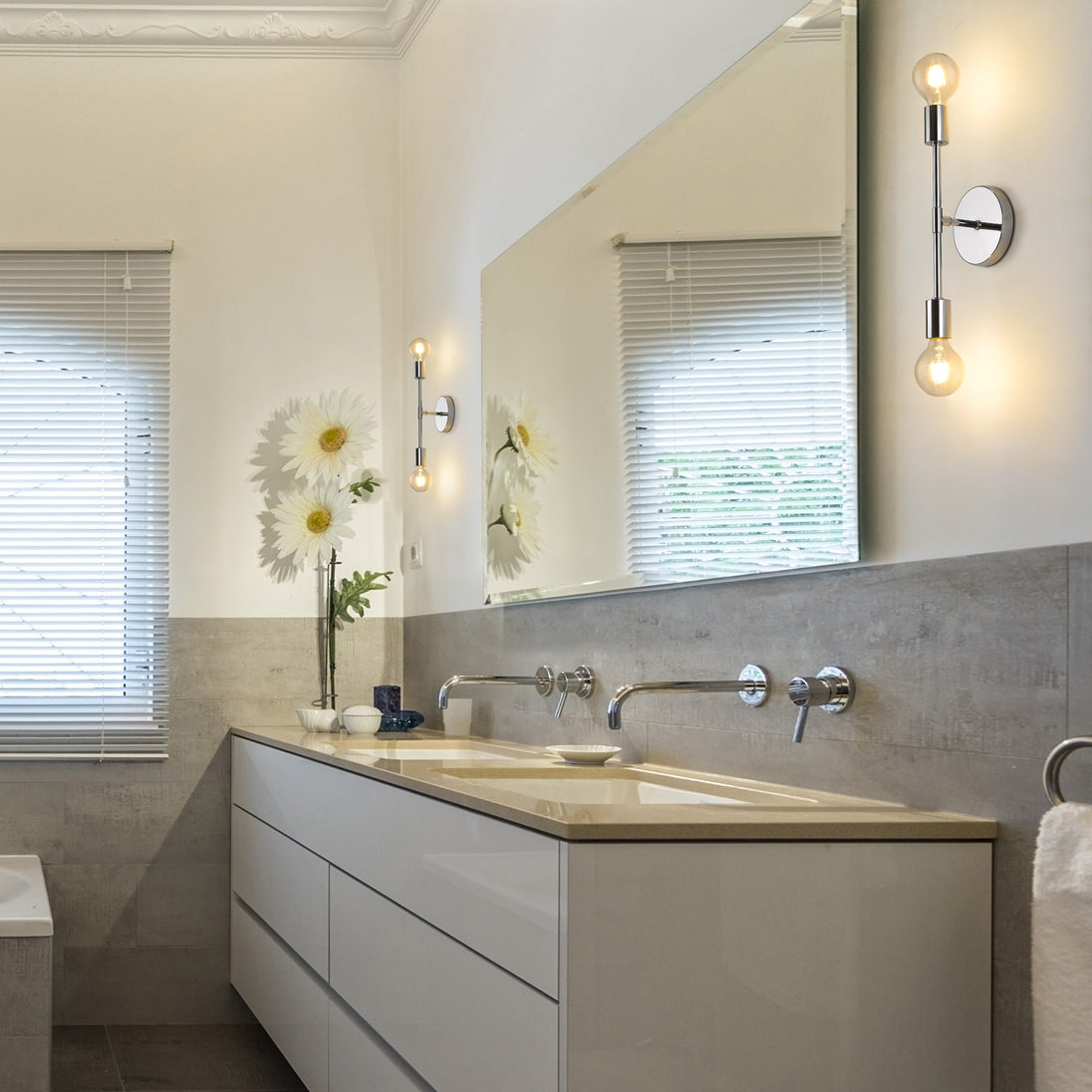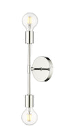 The lustrous character of chrome finish steel shines brightly, bringing a notable quality to this two-light wall sconce. From the Modernist collection, this contemporary sconce delivers a sleek linear design with a vertical frame hosting bulbs at each end, and a round wall mount offering visual balance.