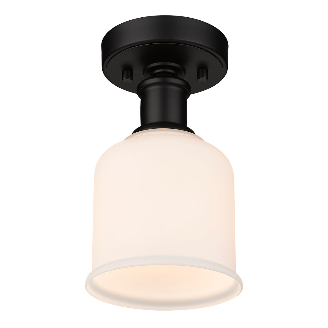 Add a touch of lighting or accent a tight space with this beautifully understated transitional flush mount, designed with a rustic matte black finish plate and versatile gooseneck arm that invites you to rotate and hone in the interior as you wish. With industrial influences and elegant materials, this sophisticated single-light flush lends a sleek, refined expression to modern farmhouse homes with its versatility as well as its soothing glow, presented by a matte opal glass globe. Place this classically designed restoration style flush mount within an entryway foyer or down a hallway, elevating it into a more inviting space.