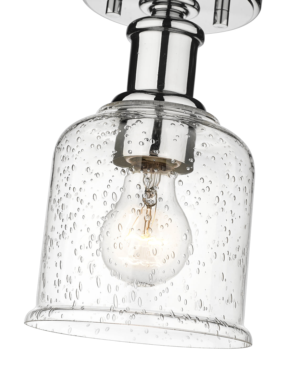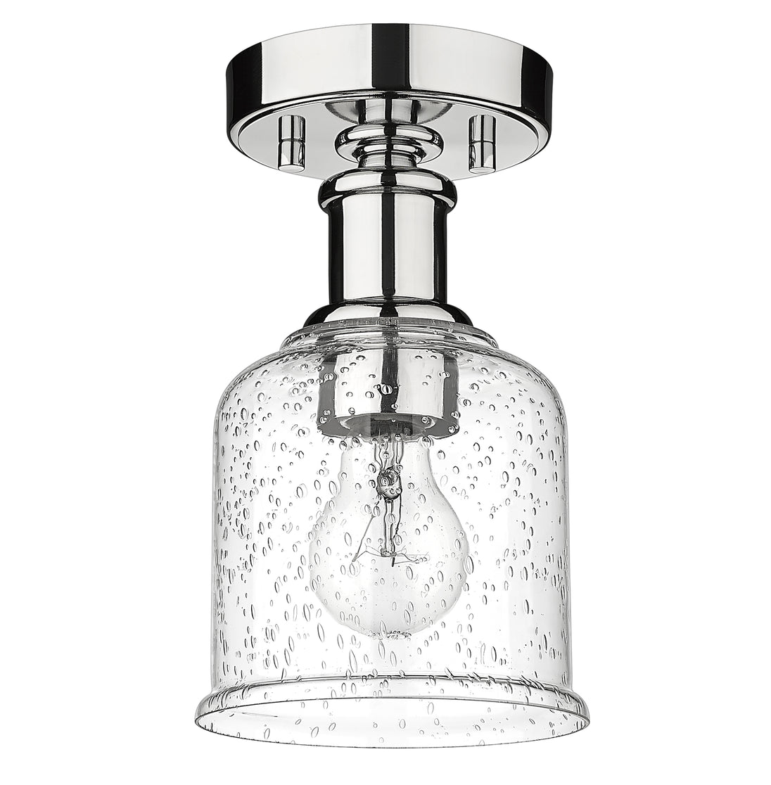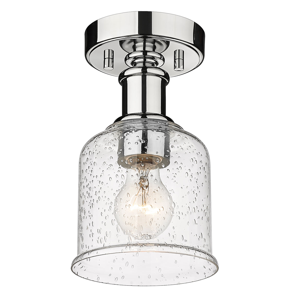 Add a touch of lighting or accent a tight space with this beautifully understated transitional flush mount, designed with lustrous chrome finish plate and versatile gooseneck arm that invites you to rotate and hone in on the interior as you wish. With industrial influences and elegant materials, this sophisticated single-light flush lends a sleek, refined expression to modern farmhouse homes with its versatility as well as its soothing glow, presented by a clear seedy glass globe that offers a hint of texture and artisan quality. Place this classically designed restoration style flush mount within an entryway foyer or down a hallway, elevating it into a more inviting space.
