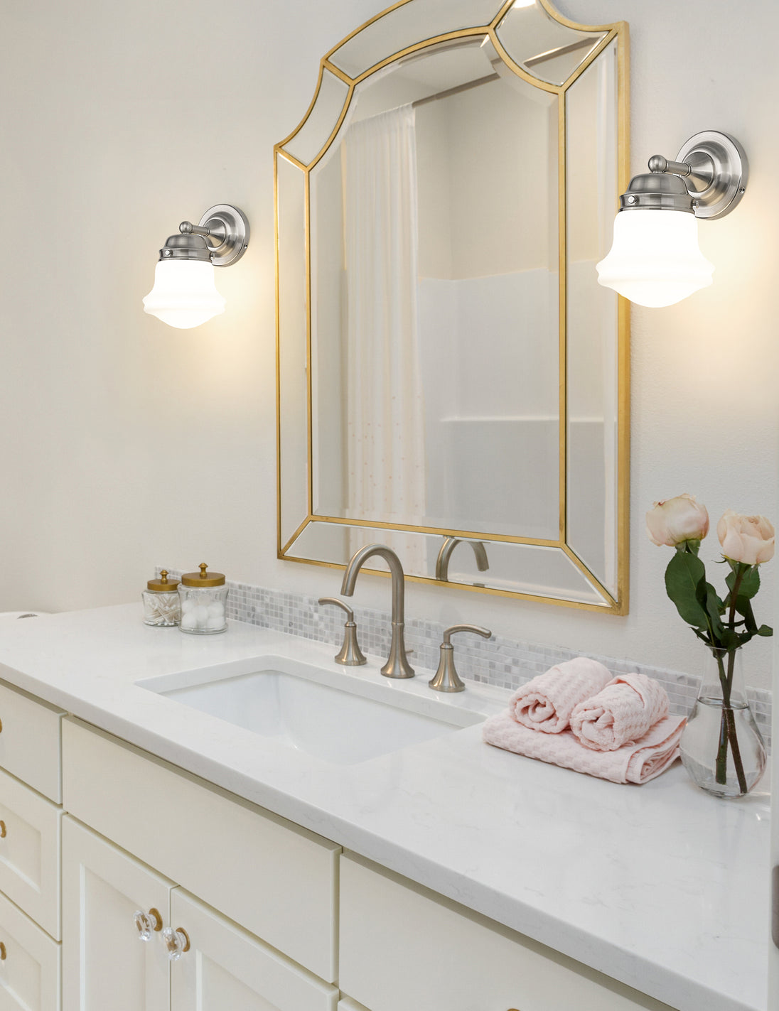 This timeless collection is inspired by Mid-Century aesthetics. The schoolhouse glass serves as the focal point of this design with its unique profile and diffused light. The classic lines complement a variety of master bath and powder room settings. Available in Chrome, Matte Black, and Brushed Nickel, and Luxe Gold finishes.