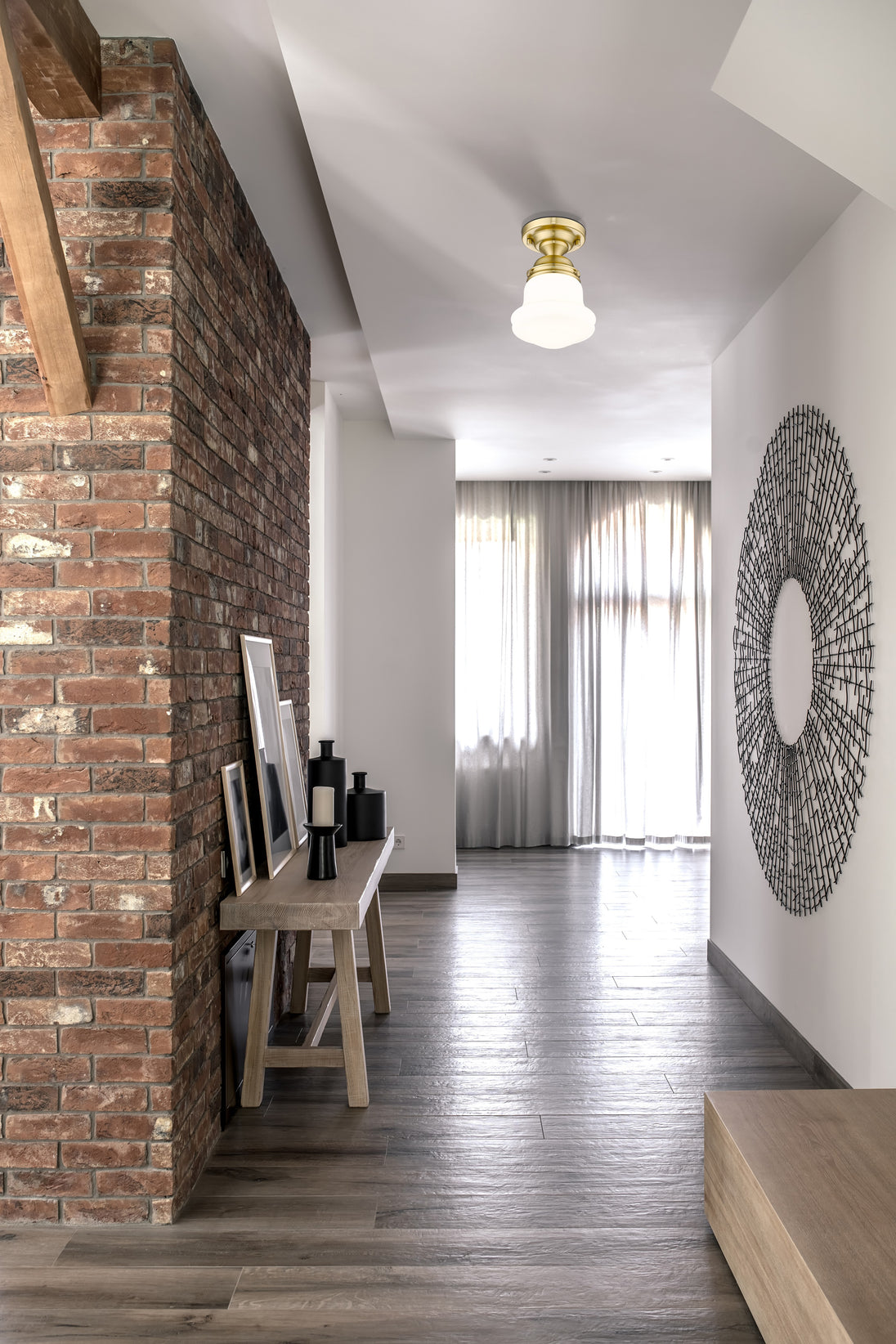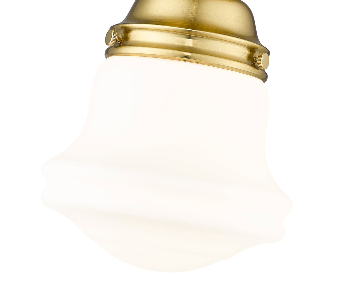 Infused with character, a modern one-light flush mount ceiling light is the perfect upgrade for your bedroom, den or hallway. Its matte opal schoolhouse glass brings exquisite vintage character, while a luxe gold finish ensures a contemporary ambiance that suits modern living. This close-to-the-ceiling fixture is ideal for rooms with lower ceilings in need of bright, diffused illumining.