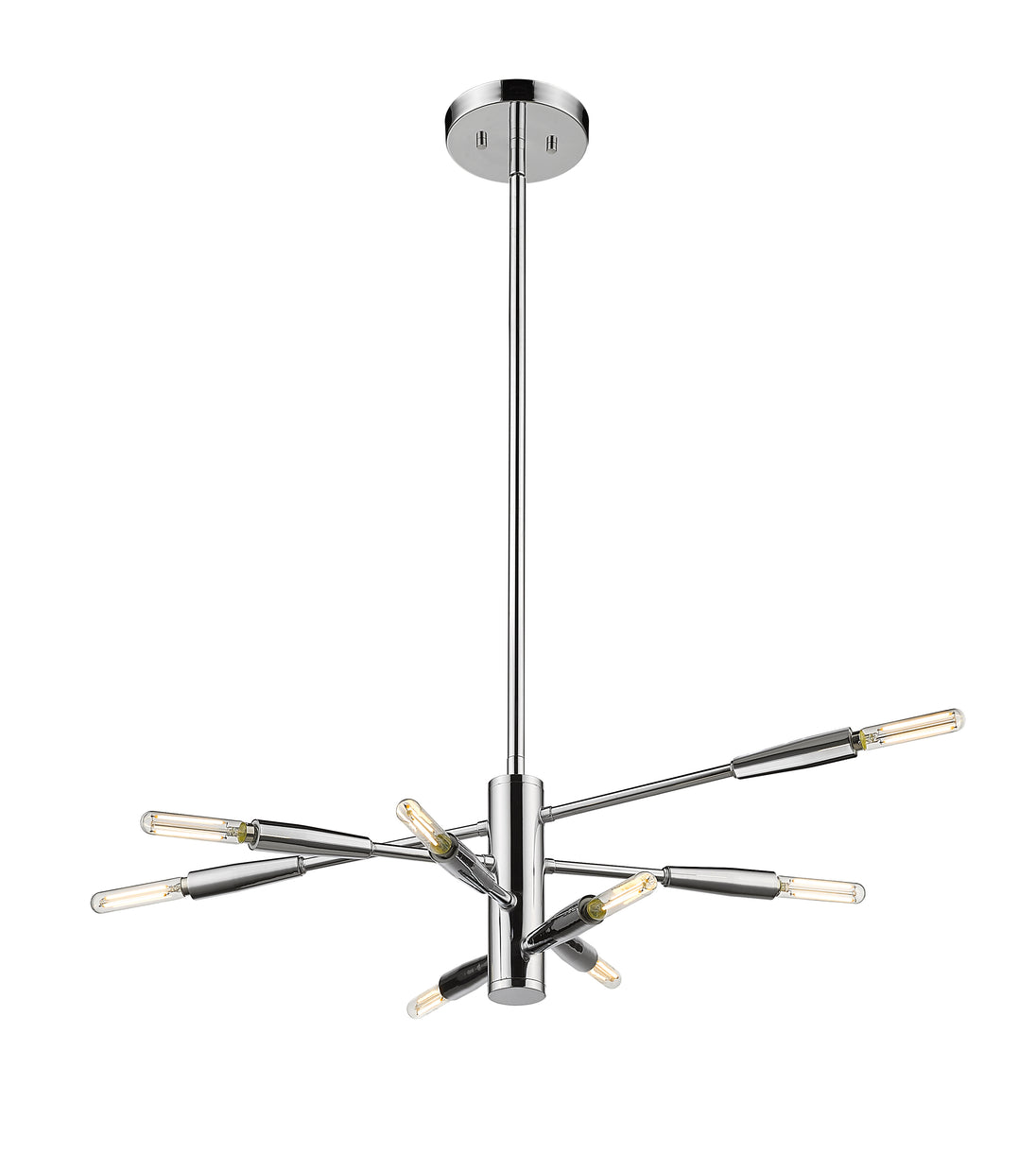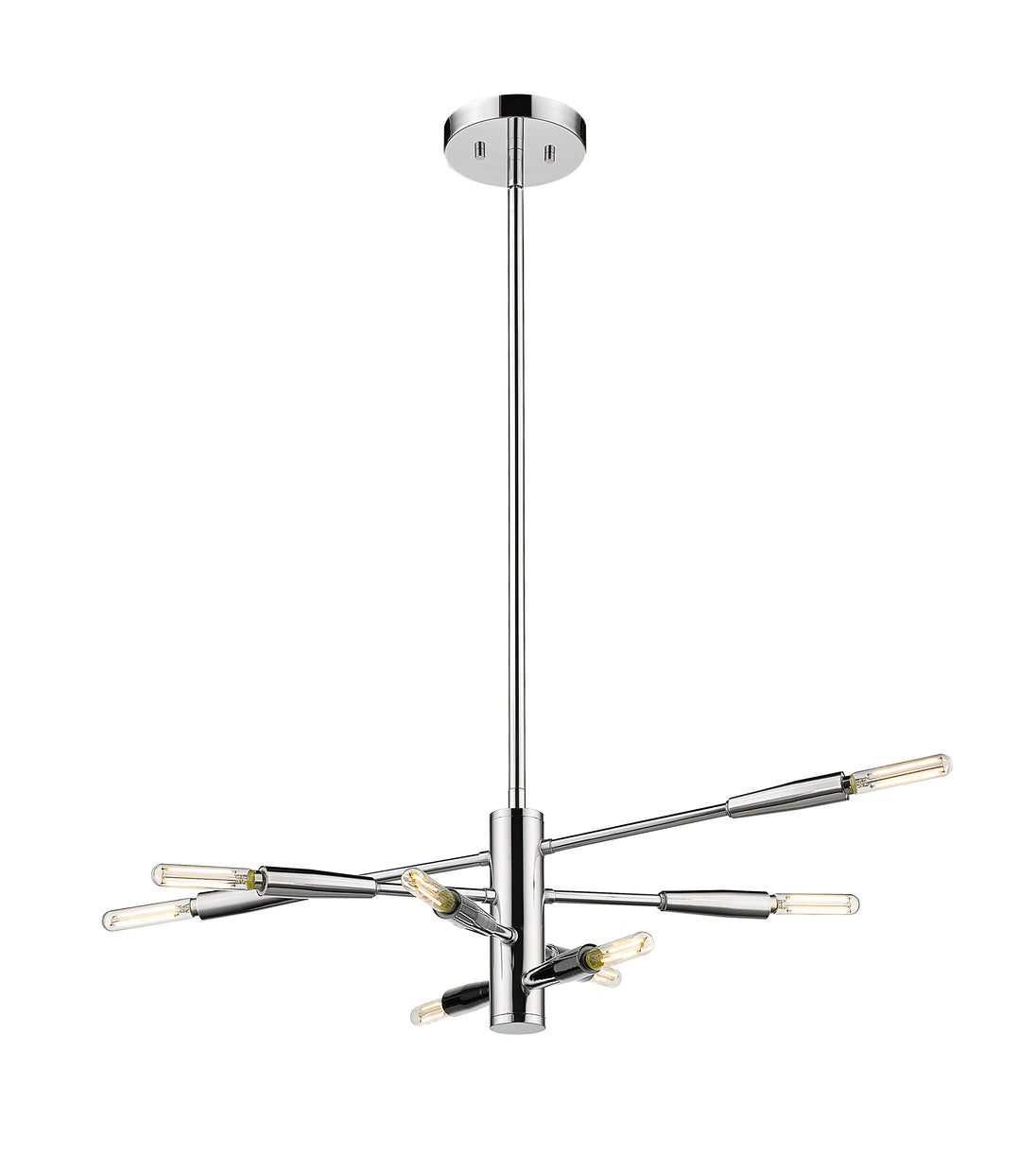 The modernistic aesthetic of space sneaks in to add a dynamic vibe to this chic eight-light chandelier from the Ascension collection. Make any space a central focus with a fixture crafted of brilliant chrome finish steel and dressed up with slender baton-style arms that may be rotated to achieve a customized look. This chandelier is a superb addition to both casual and semi-formal contemporary spaces.
