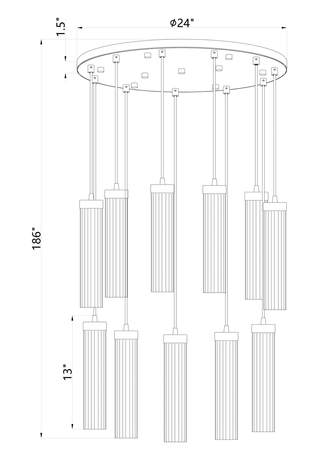 Slender fluted glass shades suspended on black cloth wrapped cords create this chic pendant and its surprisingly contrasting design elements. Three finishes are available to complement your décor, Brushed Nickel, Matte Black, and Rubbed Brass. Please note there is a rod kit available to easily convert this pendant to rod.